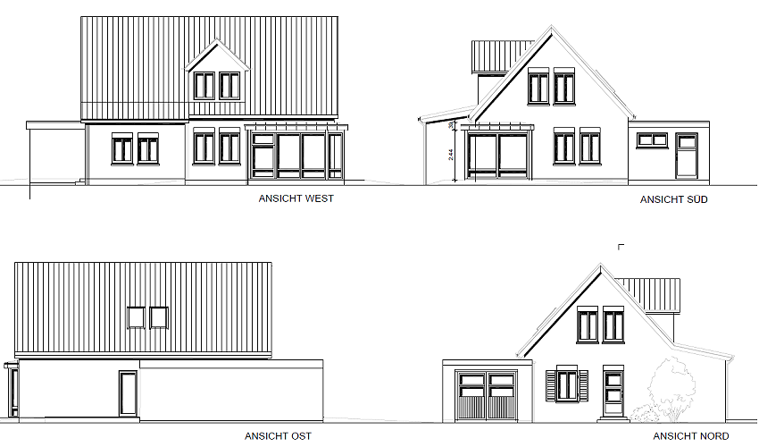 Ansichten und Querschnitt